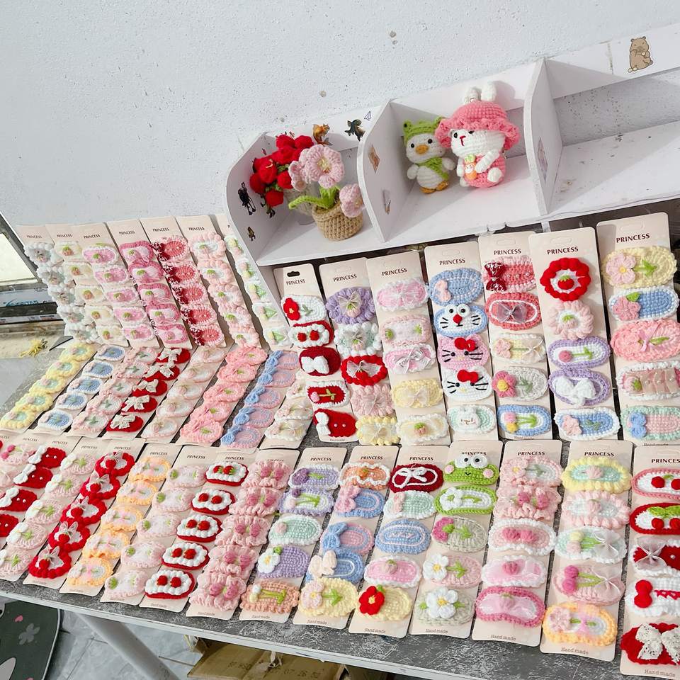 Crochet Hair Accessories Wool Hairpin Ornament Handmade Vietnam Gift for Girls Holiday Season