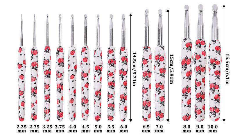 Lot de 14 aiguilles à crochet en caoutchouc 2.25mm(B)-10mm(N)