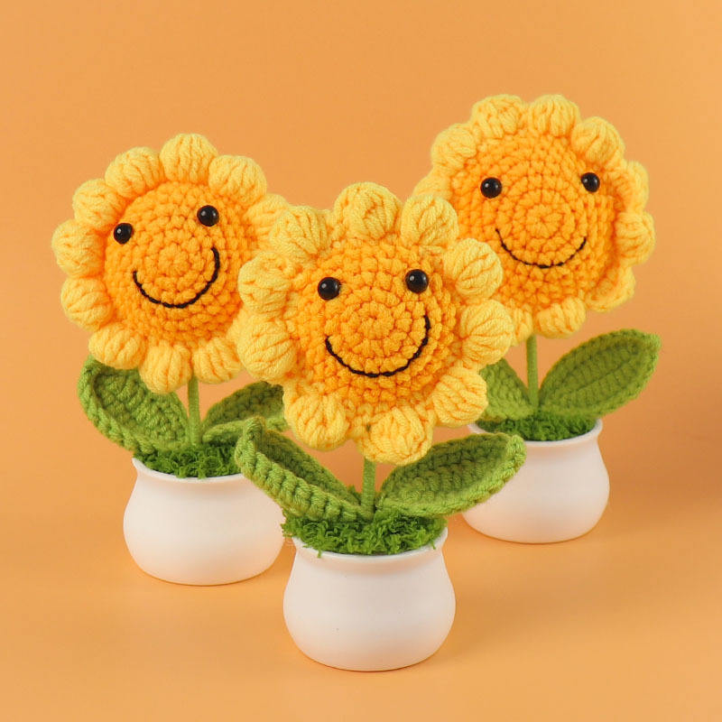 Crochet Sunflower Home Decor Mini Knit Potted Flowers Christmas Birthday Gifts Crochet Sunflower
