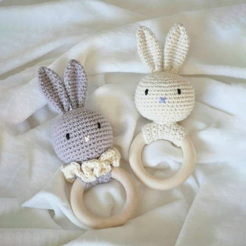 Hochet bébé jaune en Crochet, vintage, à la mode