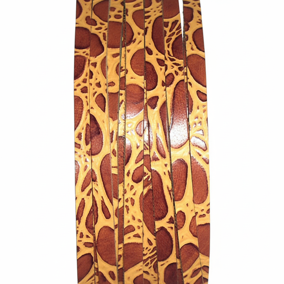 Cordons en cuir croco marron jaune pour textiles de maison et vêtements - Fils plats en cuir de reptile, finition cirée imperméable, haute ténacité