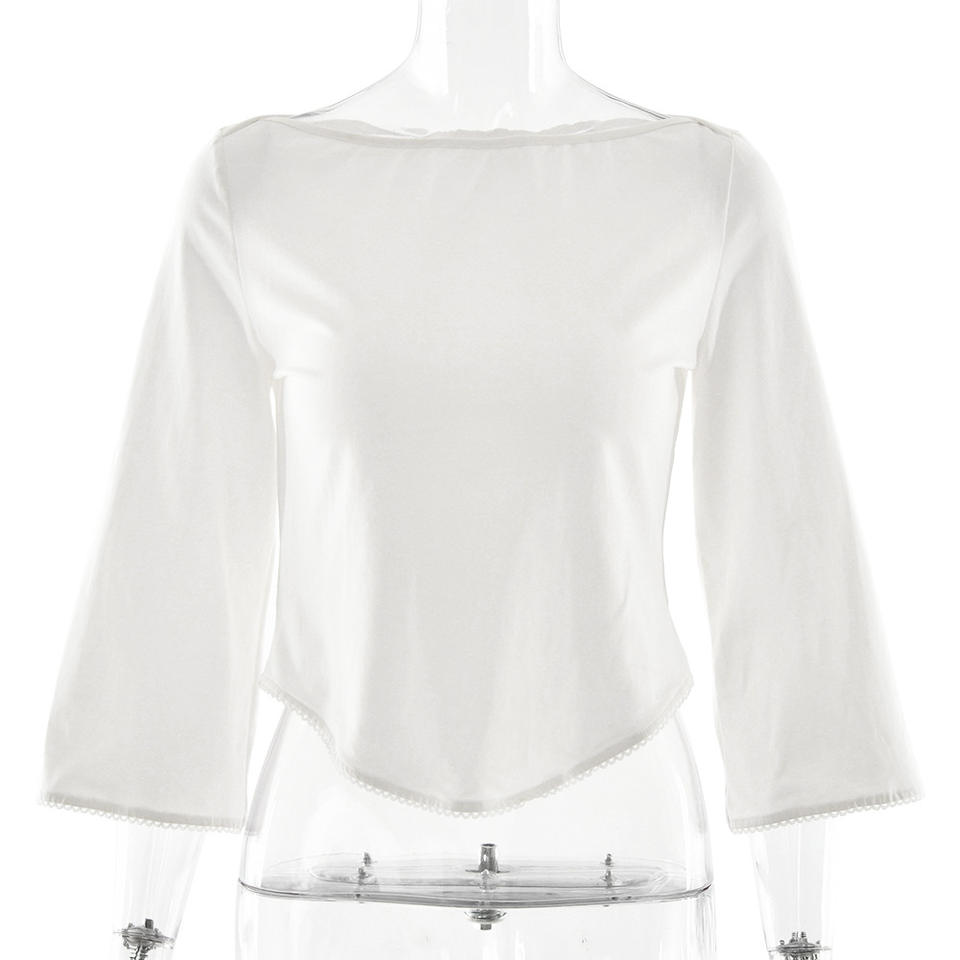 Crop top uni à manches trois quarts et col rond pour le sport, le shopping, la remise en forme et le streetwear