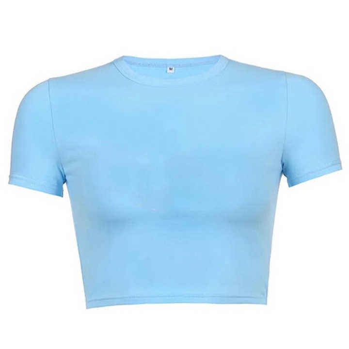 Women's 100% Cotton Crop Top T-Shirt Oversized Summer Streetwear with Puff Print & Button Decoration for Sports