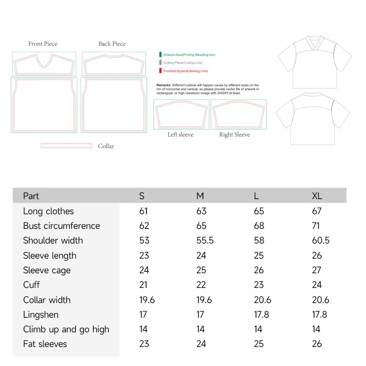 Logo position:Front, back, Left Sleeve, Right Sleeve, lower hem, back neck