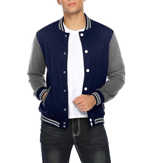 Blouson universitaire court pour femme en mélange de laine, ourlet côtelé, fermeture à boutons-pression, manches en similicuir, vêtement d'extérieur tendance