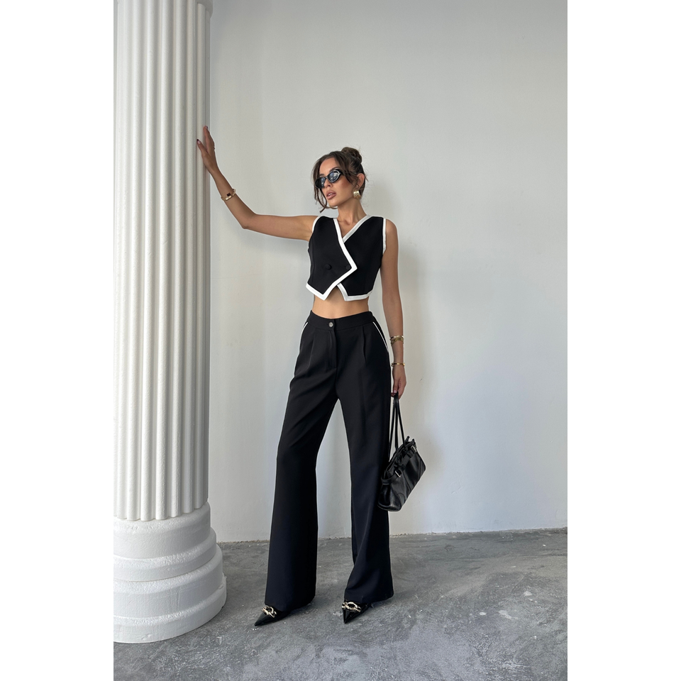 Ensemble veste courte avec passepoil asymétrique et pantalon en jean noir pour femme, taille S