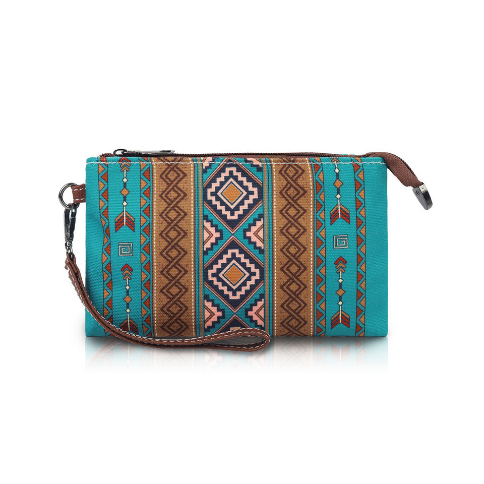 Sac à main long géométrique style bohème pour femme, collection transfrontalière 2026, portefeuille vintage européen et américain avec fermeture éclair antivol pour le travail et les trajets quotidiens