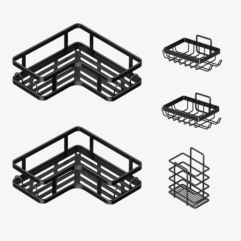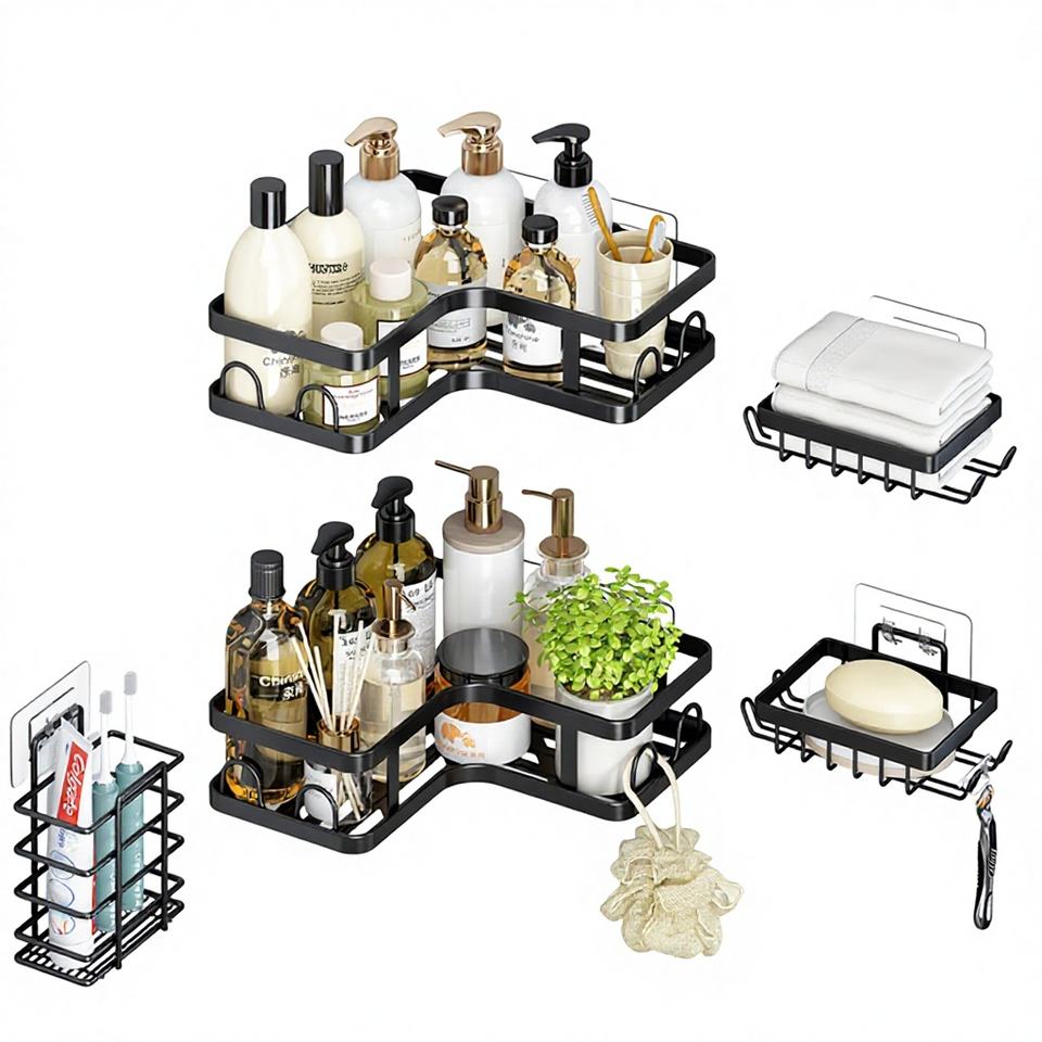 Étagère d'angle triangulaire pour salle de bain, 2 niveaux, revêtement poudré, pour articles de toilette, en fer forgé, sans perçage, pour l'exportation