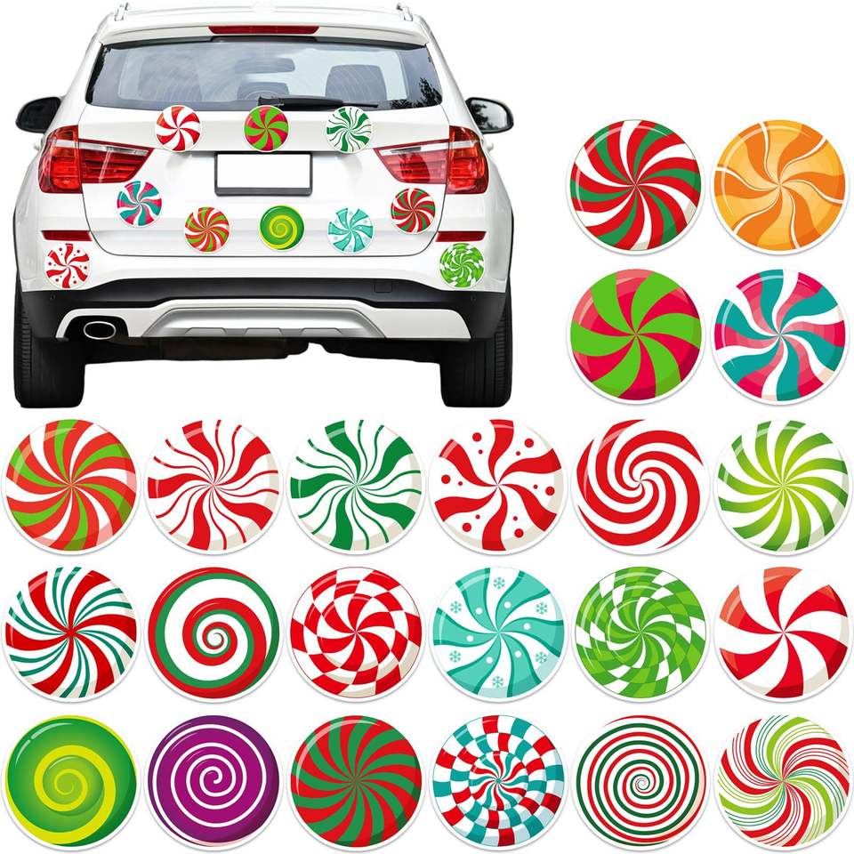 Décorations de Noël transfrontalières, aimants ronds pour pare-chocs de voiture en forme de sucette, aimants pour porte de garage en forme de bonbon à la menthe, aimants pour réfrigérateur