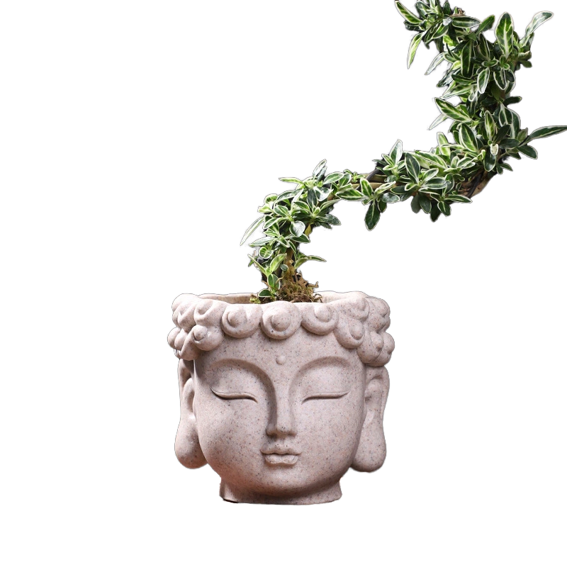 Pot de fleurs numérique créatif transfrontalier en forme de tête de Bouddha, écologique et moderne, pour décoration de bureau à domicile, plantes en pot, vert simple
