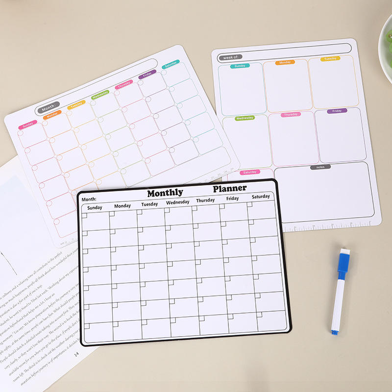 Tableau blanc effaçable transfrontalier autocollants de réfrigérateur calendrier magnétique mémo babillard avec calendrier pour écrire des notes
