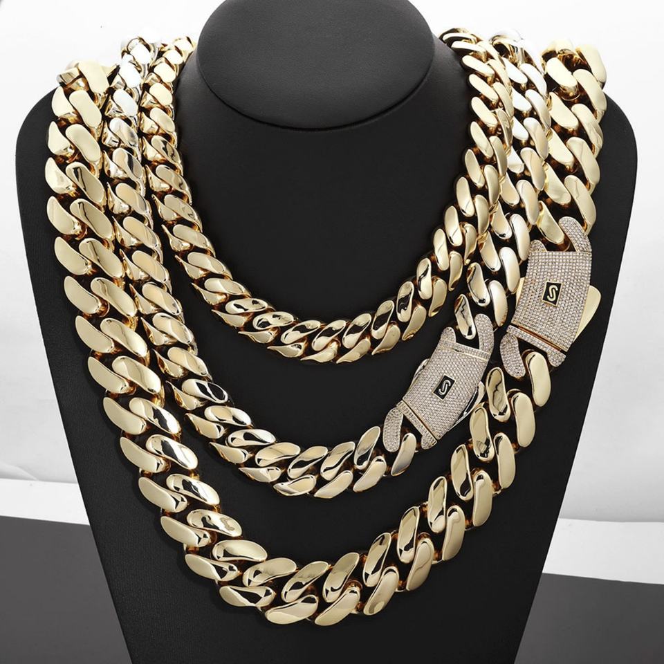 Collier Hip-Hop Cubain Populaire Européen et Américain en Acier Inoxydable Plaqué Or 14K avec Zircon pour Homme Haut de Gamme