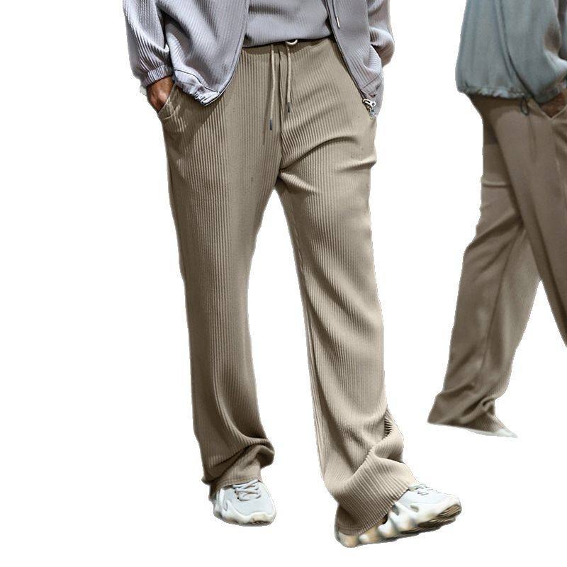 Pantalon large jacquard rayé pour homme, taille européenne, grande taille, coupe décontractée, jambe droite, cordon de serrage côtelé