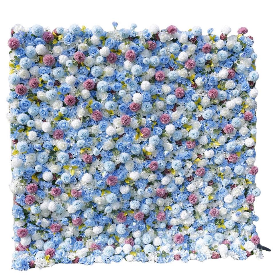 Mur de fleurs artificielles de roses bleues de style européen transfrontalier, art floral tendance pour la décoration de mariages et de Noël