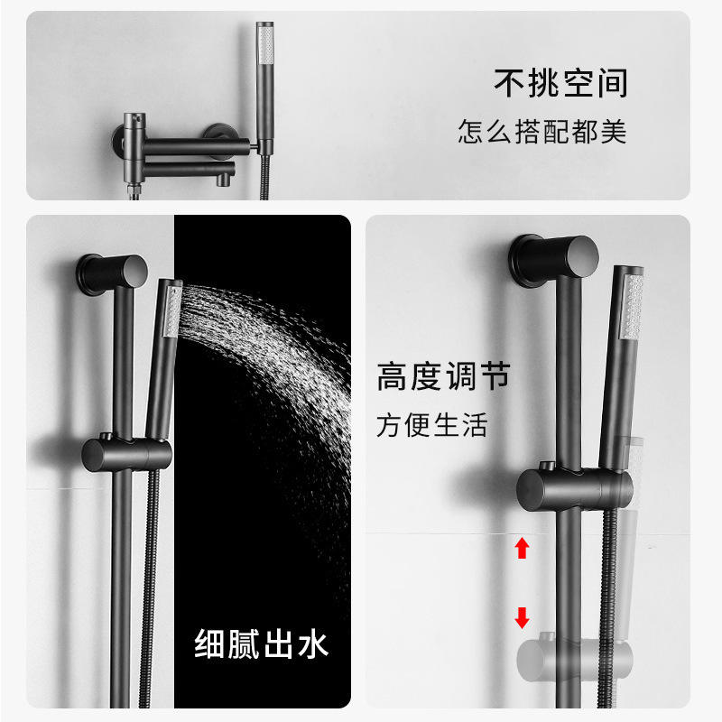 Ensemble de douche gris bronze Cross Border 3,5-4,9 GPM avec valve en céramique, jet de pluie, tête ronde réglable en hauteur
