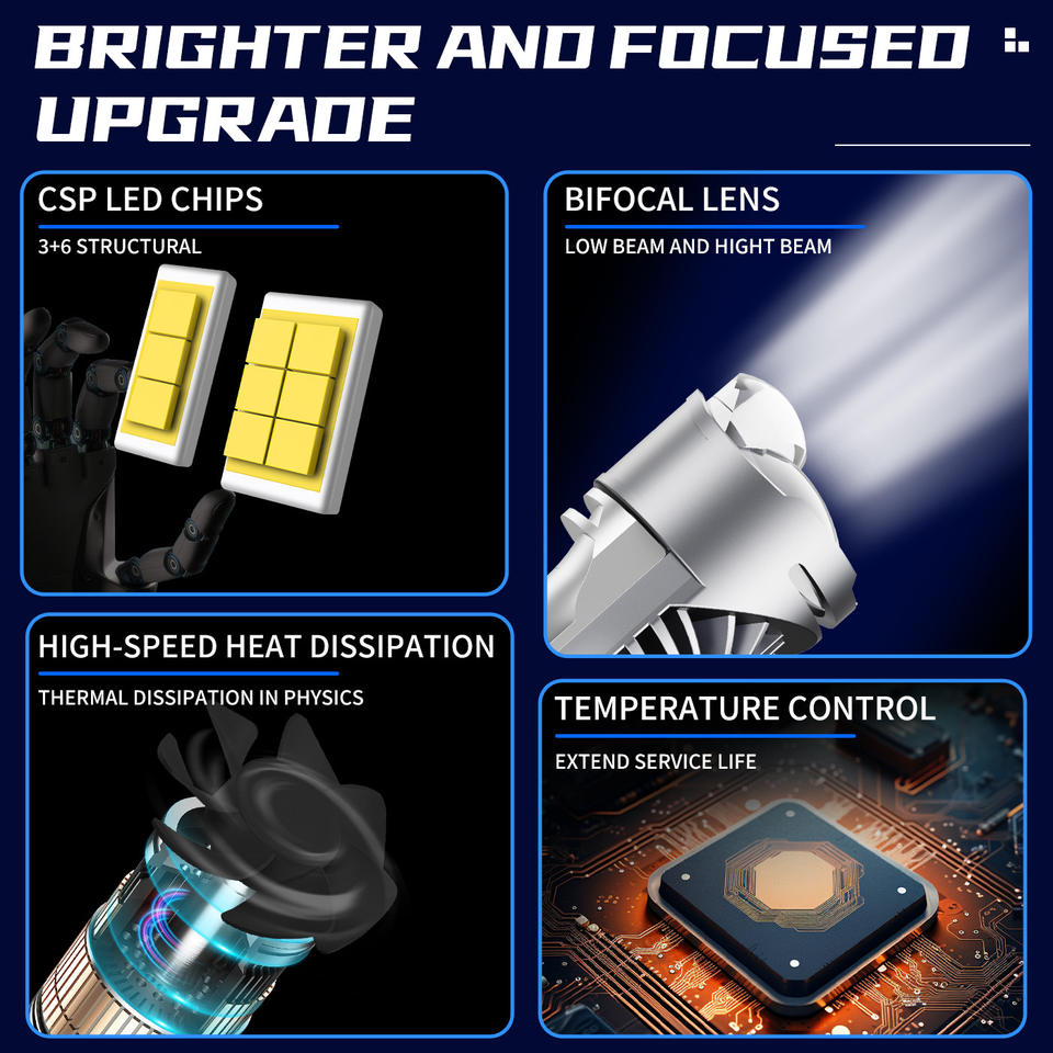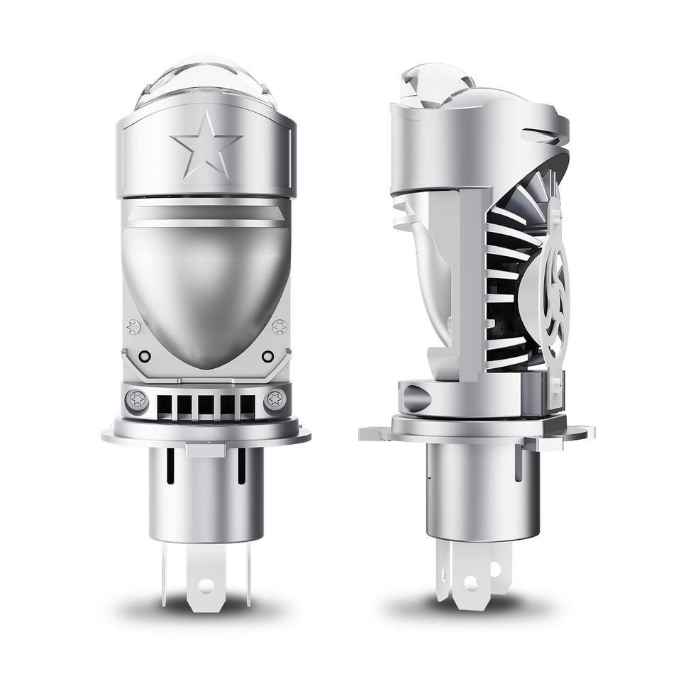 Phare LED H4 transfrontalier à double faisceau 12V 45W, mini-ampoule à lentille pour voiture et moto, type Fisheye
