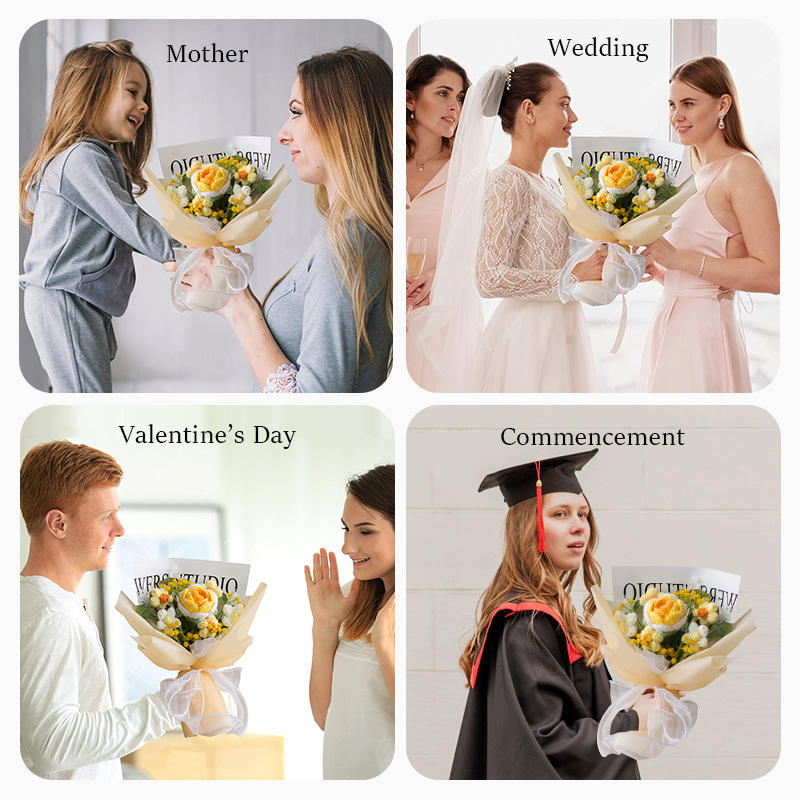 Bouquet de fleurs en fil de coton crocheté réaliste parfumé fait à la main transfrontalier, bouquet de roses en fil de coton, boîte cadeau pour la fête des mères et Thanksgiving