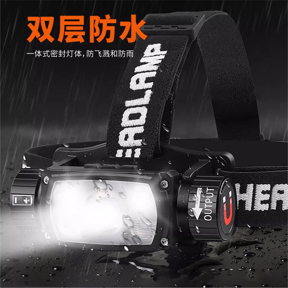 Lampe frontale LED rechargeable transfrontalière à luminosité réglable, portée 100-199 m, pour cyclisme et usage extérieur