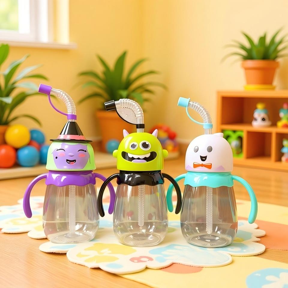 Gobelet à paille avec poignée en PET, motif dessin animé monstre fantôme sorcière ventre rond, pour animaux de compagnie, produit transfrontalier très vendu et en stock