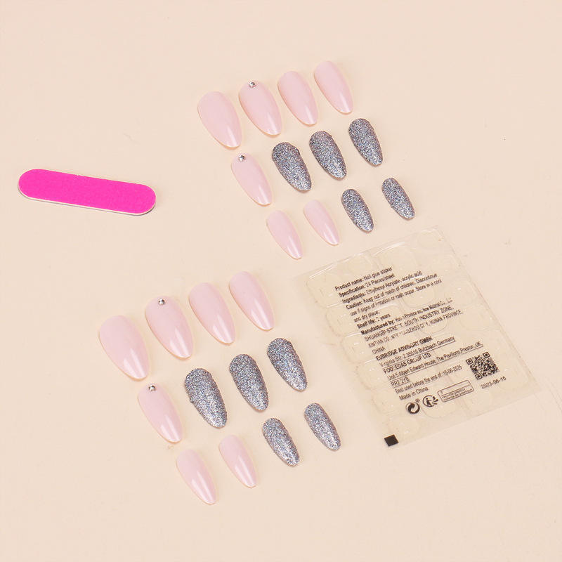 Cross-Border Hot-Selling Wearable Nails Medium-Length Pink Glitter Point Rhinestone Pure Desire Art Tips 24 Pieces Nail Stickers