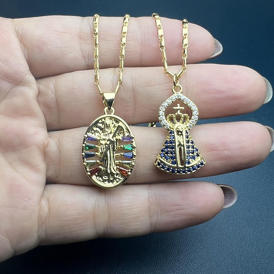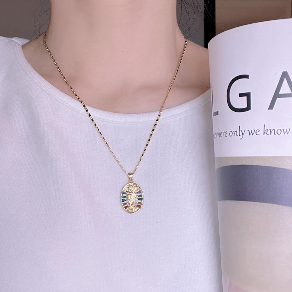 Collier pendentif Vierge de la Mort en zircon, chaîne de clavicule, ornement rétro européen et américain, produit transfrontalier très vendu