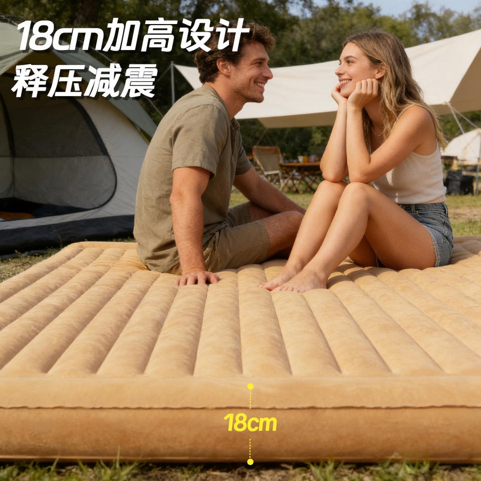 Matelas Gonflable Portable pour Camping, Tapis de Couchage Rectangulaire, Lit d'Appoint Simple avec Surface en Suède