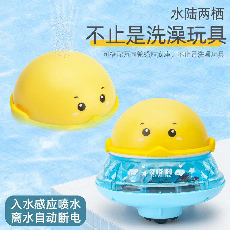 Jouet de douche de bain d'eau de cochon de petit canard jaune transfrontalier détection électrique balle de pulvérisation d'eau en plastique pour enfants jouer jouets de bain