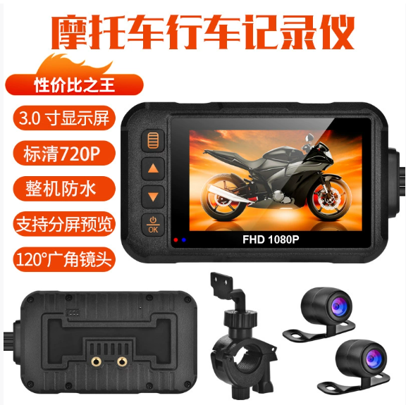 Caméra de tableau de bord de vélo de moto transfrontalière étanche avant et arrière double enregistrement 720P HD caméra de moto