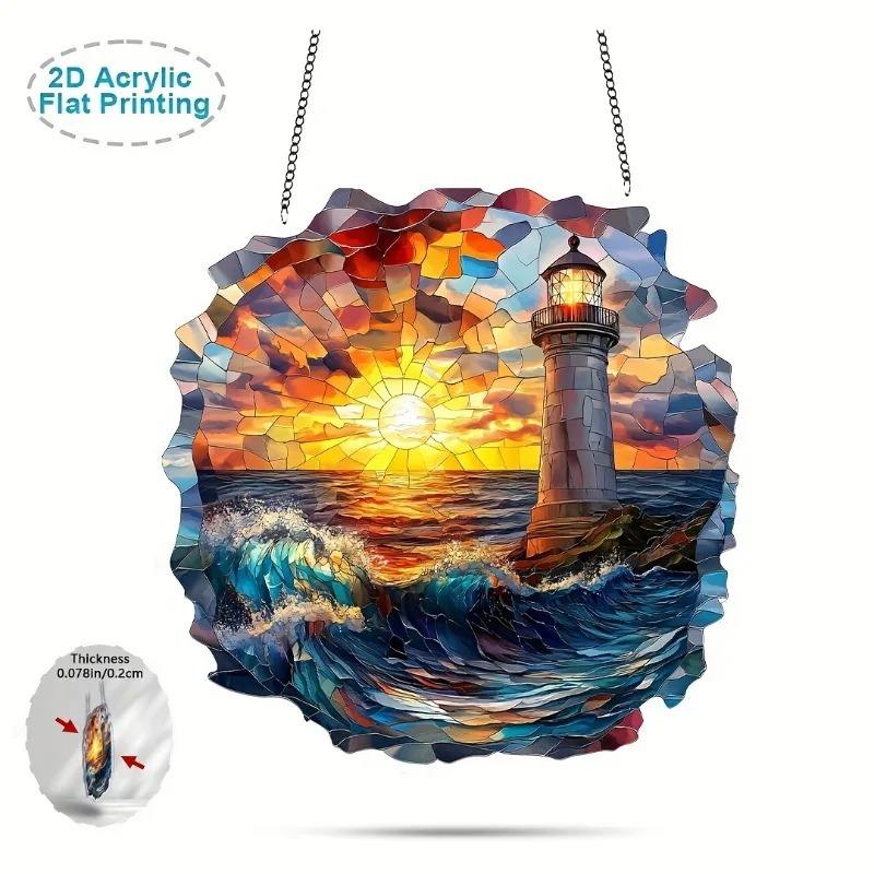 Nouveau film acrylique 2D transfrontalier, art moderne, décoration intérieure, attrape-soleil, pendentif peint, panneau suspendu coloré, phare