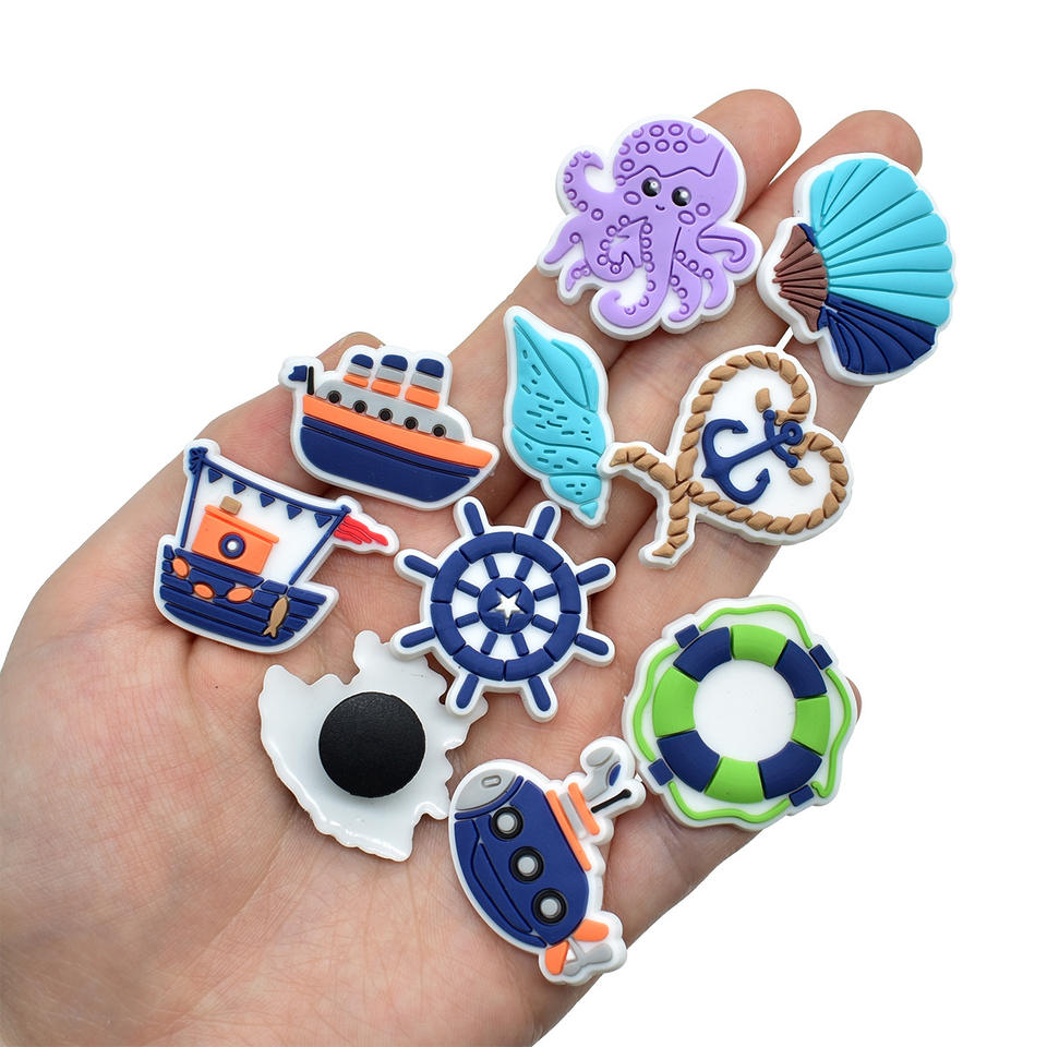 Nouvelle série de chaussures Croc transfrontalières, style gouvernail de bateau, accessoires de chaussures de mode nautique pour fête, clips de chaussures de dessin animé