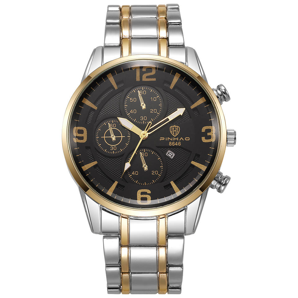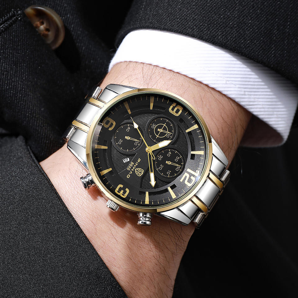Montre de style professionnel transfrontalier pour hommes, cadran rond, calendrier, multifonctionnelle, montre à quartz de luxe pour hommes