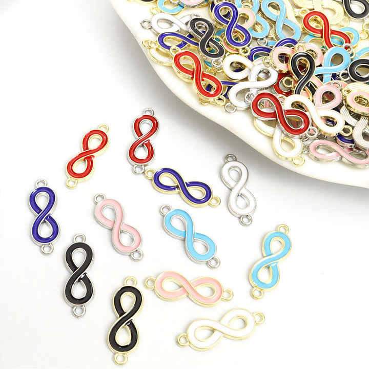 Connecteur à 8 caractères pour la création de bijoux transfrontaliers, idéal pour la fabrication de colliers et bracelets DIY avec accessoires de gouttelettes de couleur à suspendre en double, petit P