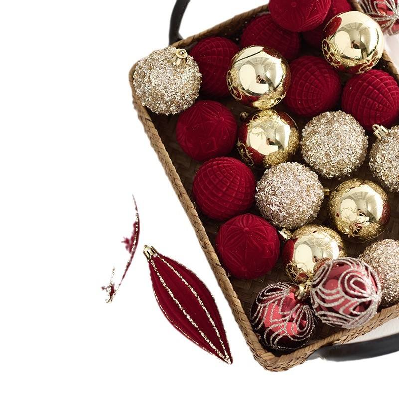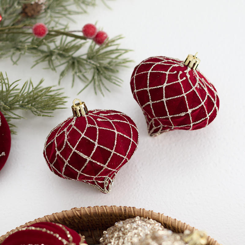 Nouveau produit transfrontalier : Boule décorative de Noël irrégulière en PVC, floquée rouge bordeaux, peinte, pour sapin de Noël