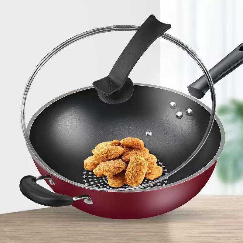 Wok antiadhésif transfrontalier 32 cm avec revêtement diamanté pour cuisinières à gaz et à induction, usage domestique