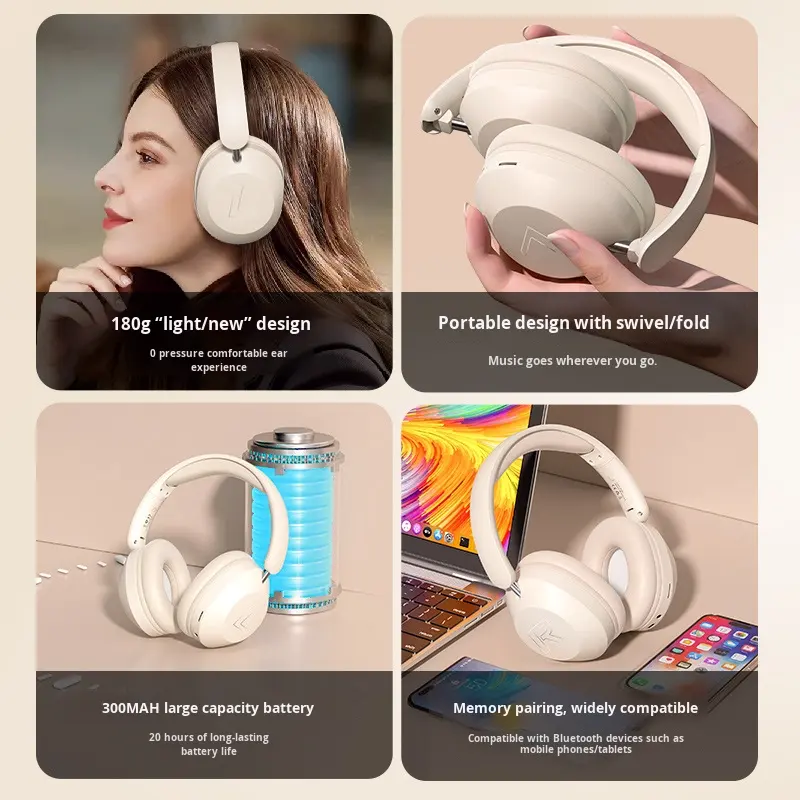 Casque Bluetooth supra-auriculaire transfrontalier à grande autonomie, écouteurs sans fil universels pour la musique et les instruments