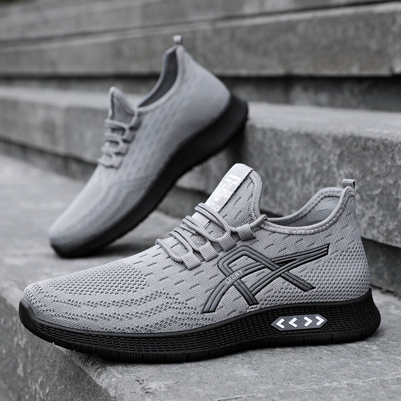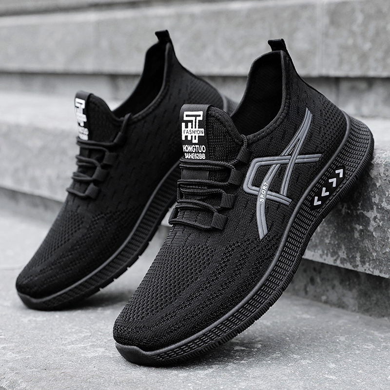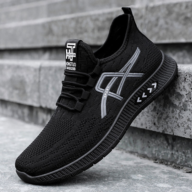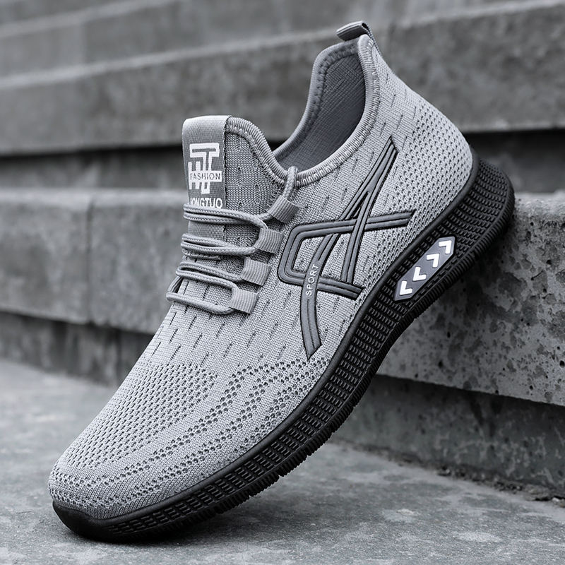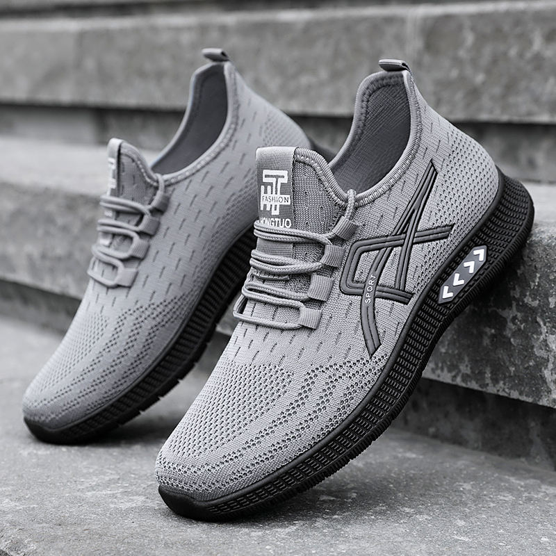 Chaussures de sport pour hommes grandes tailles, transfrontalières, en gros, tissées, respirantes, à enfiler, pour la course et le quotidien, été, couleur unie