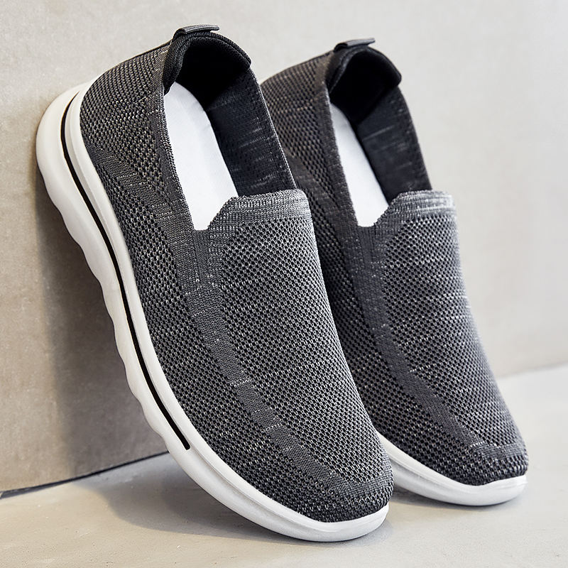 Chaussures de sport pour hommes grandes tailles, transfrontalières, en gros, tissées, respirantes, à enfiler, pour la course et le quotidien, été, couleur unie