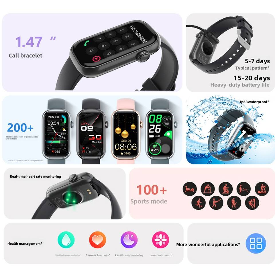 Cross-Border Qs50 Waterproof Smartwatch for Men Women New Model Body Temperature Heart Rate Menstrual Cycle