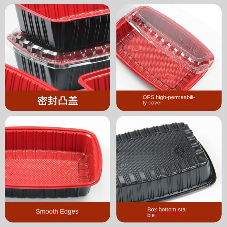 Boîte à lunch jetable de qualité supérieure 900 ml (26 oz) épaissie, de qualité alimentaire, rouge et noire, pour sandwichs, salades et pains, idéale pour la vente à emporter transfrontalière