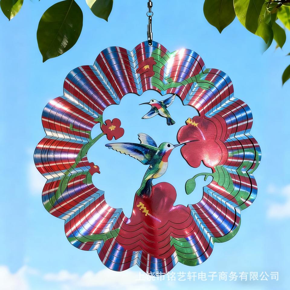Carillon éolien rotatif transfrontalier Mandala 3D en métal pour extérieur, ornement de jardin suspendu, artisanat en fer