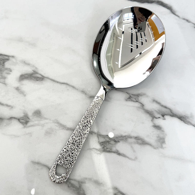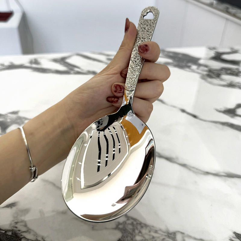 Cuillère de service à tête ronde en acier inoxydable 304, grande passoire robuste pour fêtes et buffets