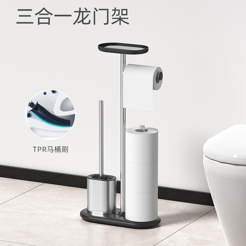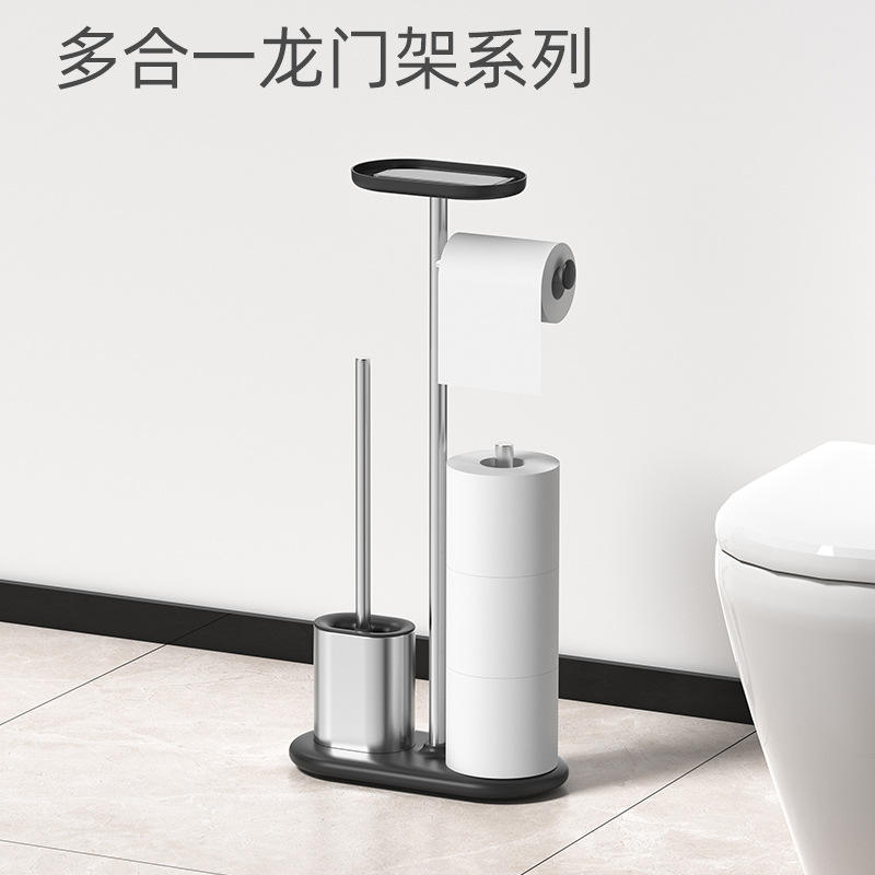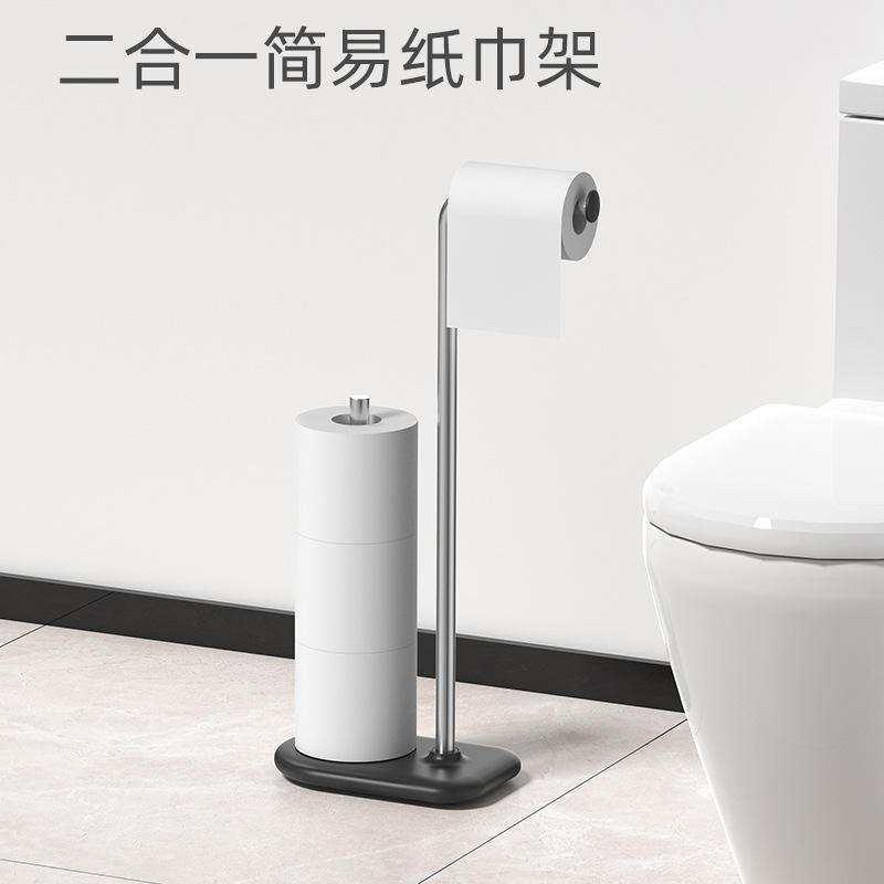 Support multifonctionnel en acier inoxydable pour papier toilette et brosse WC, design transfrontalier en forme de piste, couleur argent