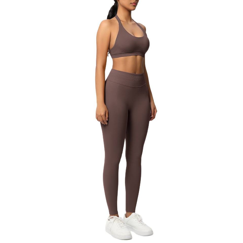 Soutien-gorge de sport taille haute respirant sans couture couleur unie dos nu ensemble de tenues de yoga Spandex/Nylon moulant