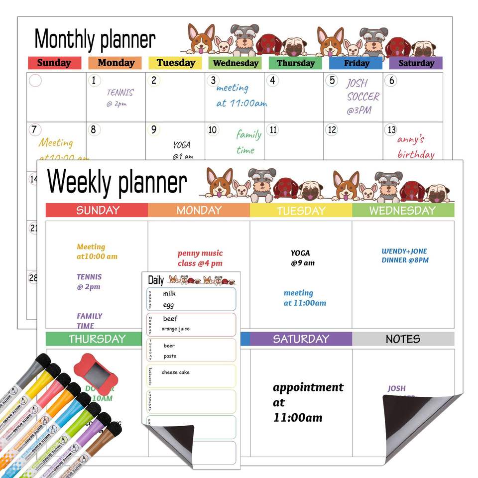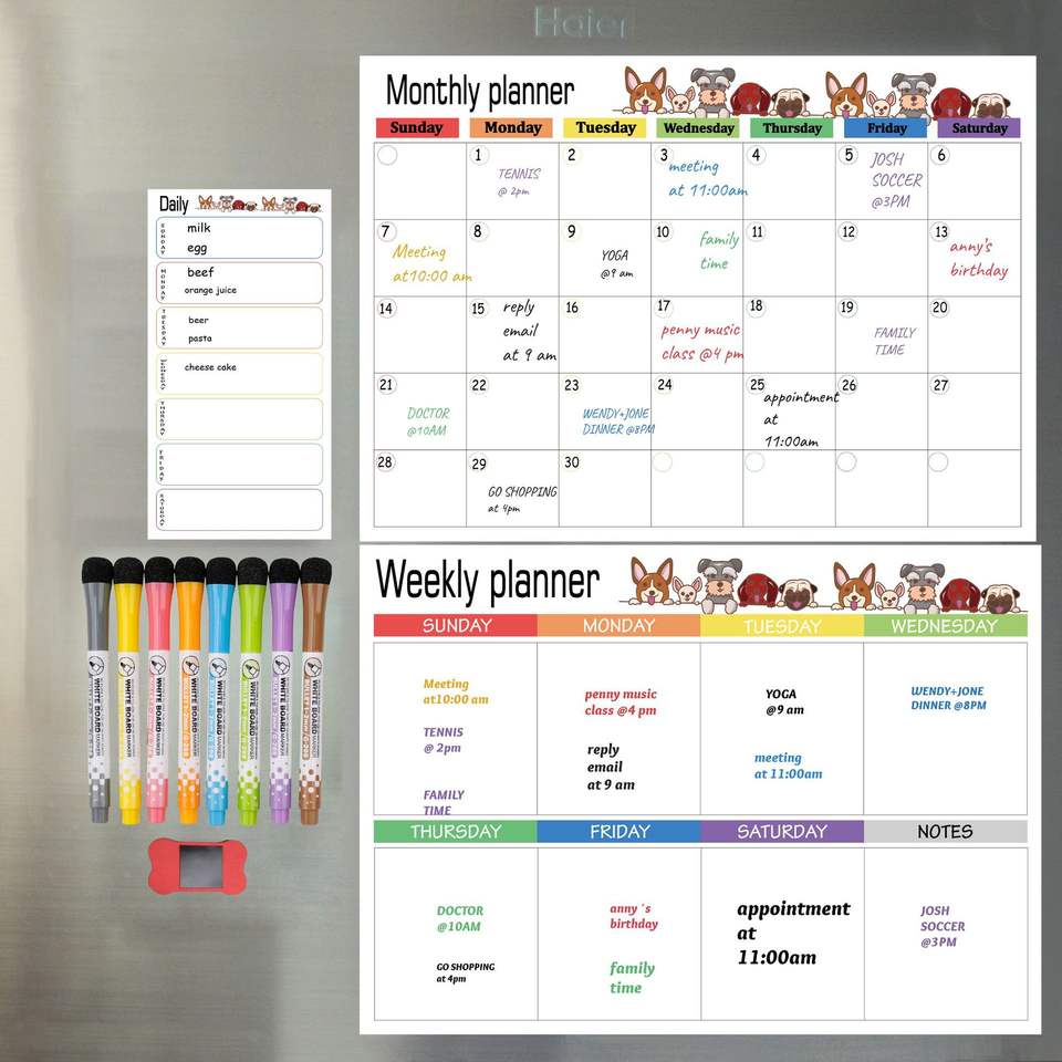 Dimensionnement transfrontalier effaçable à sec magnétique réfrigérateur autocollant mois semaine calendrier effaçable tableau blanc babillard