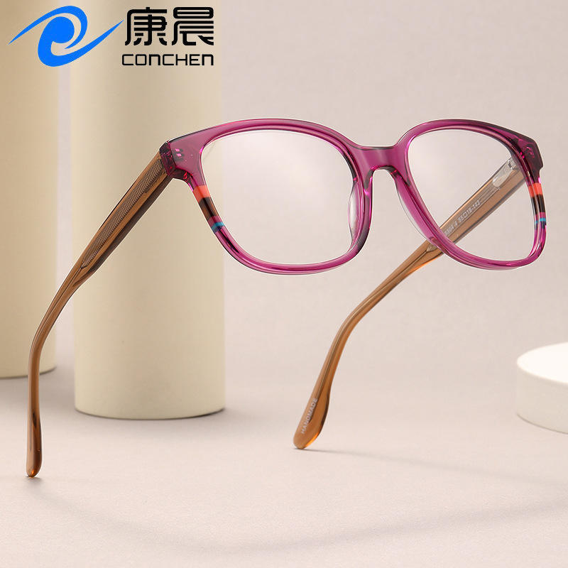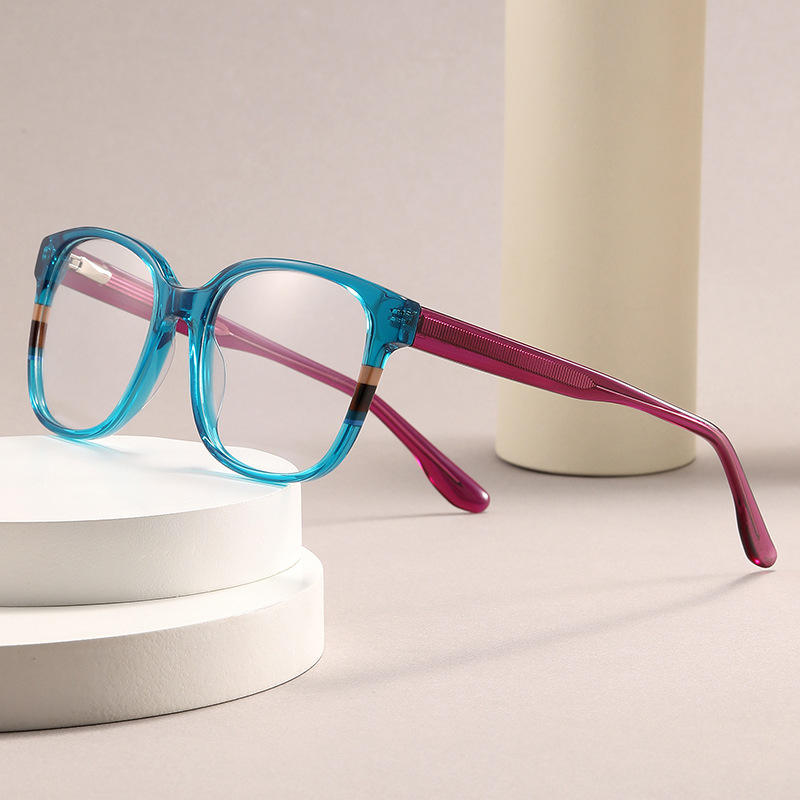 Lunettes de vue sans correction pour femme, monture carrée transfrontalière, patchwork, color blocking, style minimaliste, monture complète, verres plats