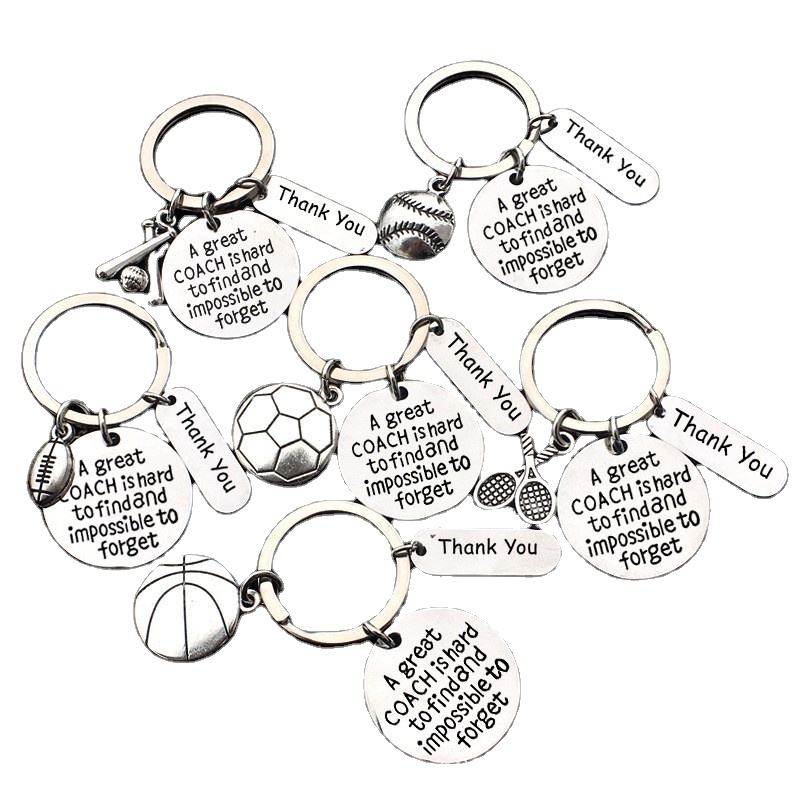 Acier inoxydable transfrontalier pour porte-clés de remise des diplômes d'entraîneur nouveau porte-clés de sport pour basket-ball Football grand cadeau porte-clés