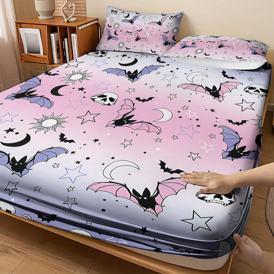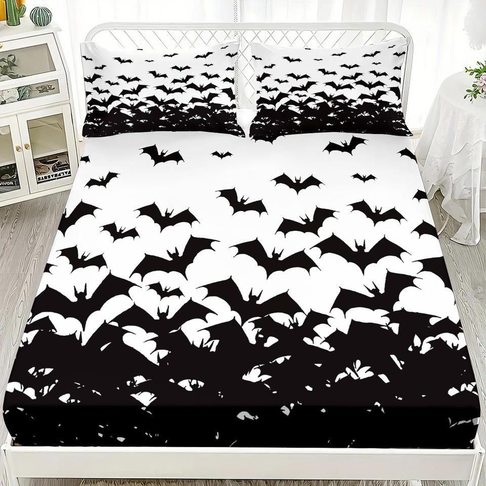 Ensemble de literie trois pièces transfrontalier drap-housse personnalisé Halloween chauve-souris Design doux pour la peau brossé 100% Polyester maison