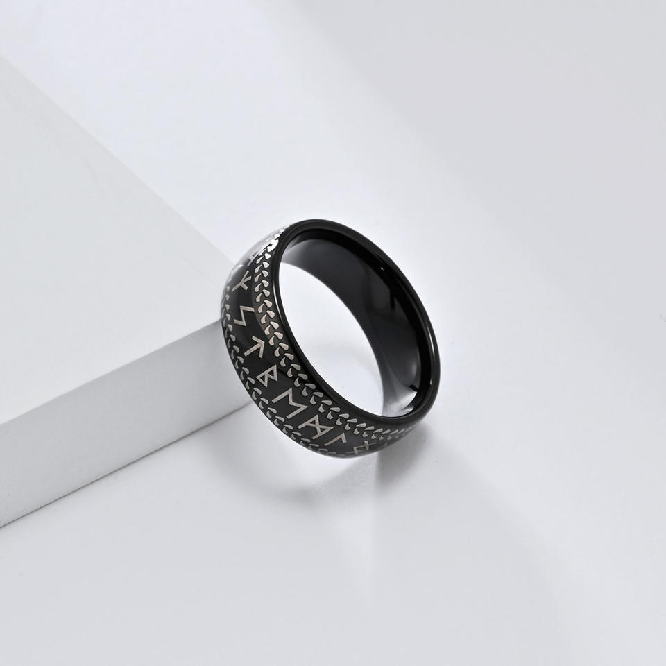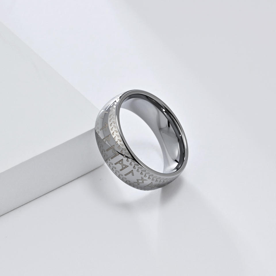Croix frontière Vintage Viking Rune Anneau Minimaliste Norse Runique Alphabet 8MM Carbure De Tungstène Bande Unisexe Médiéval Païen Bijoux