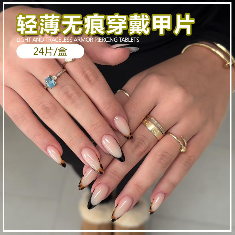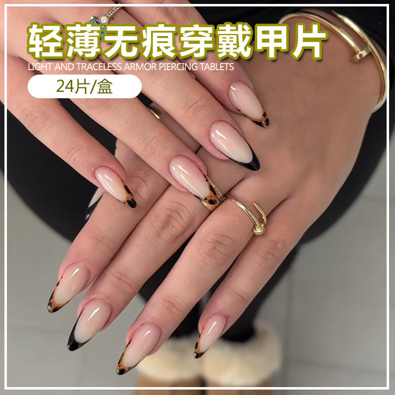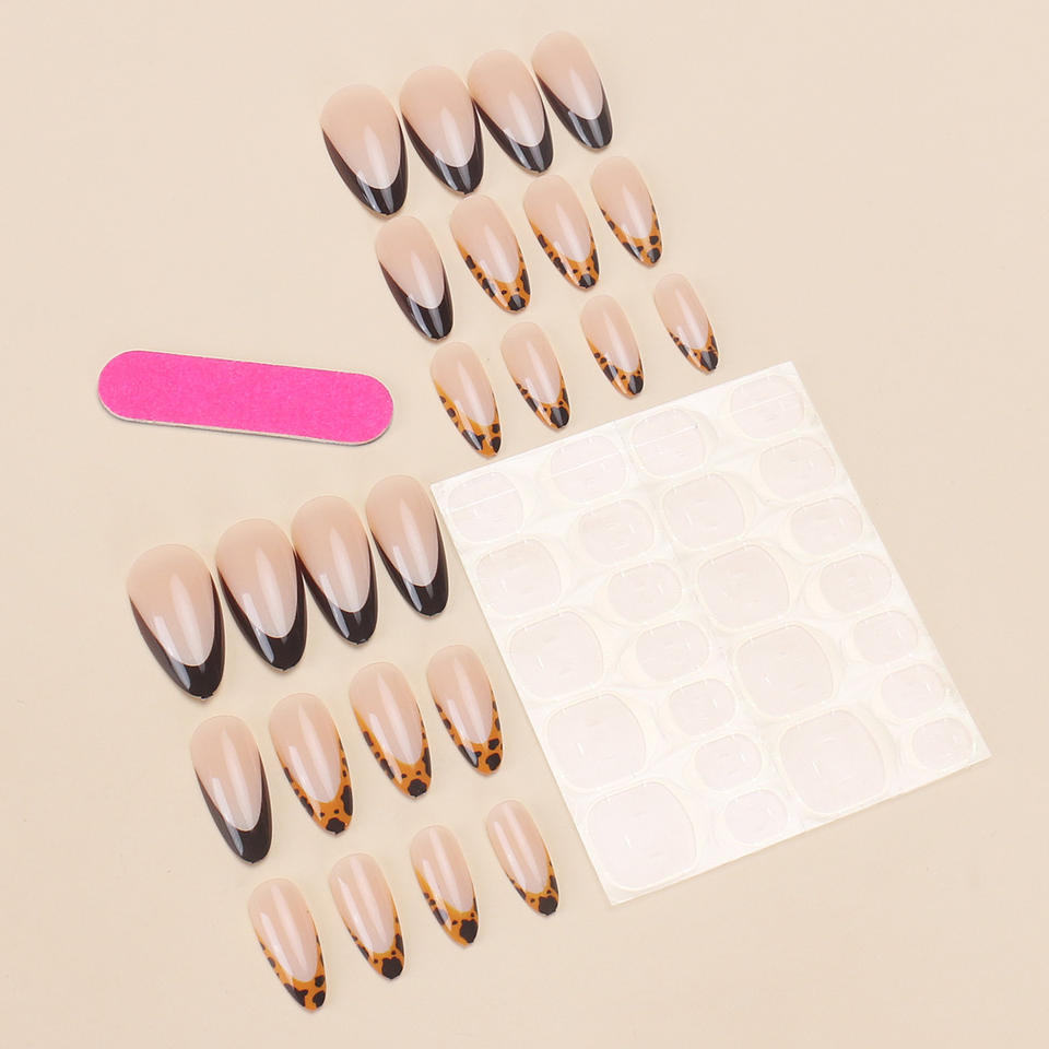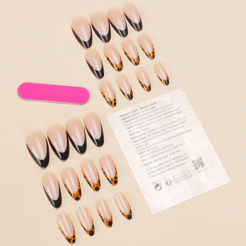 Ongles portables transfrontaliers forme de goutte d'eau imprimé léopard français bord noir européen et américain vente chaude ongles conseils exportation