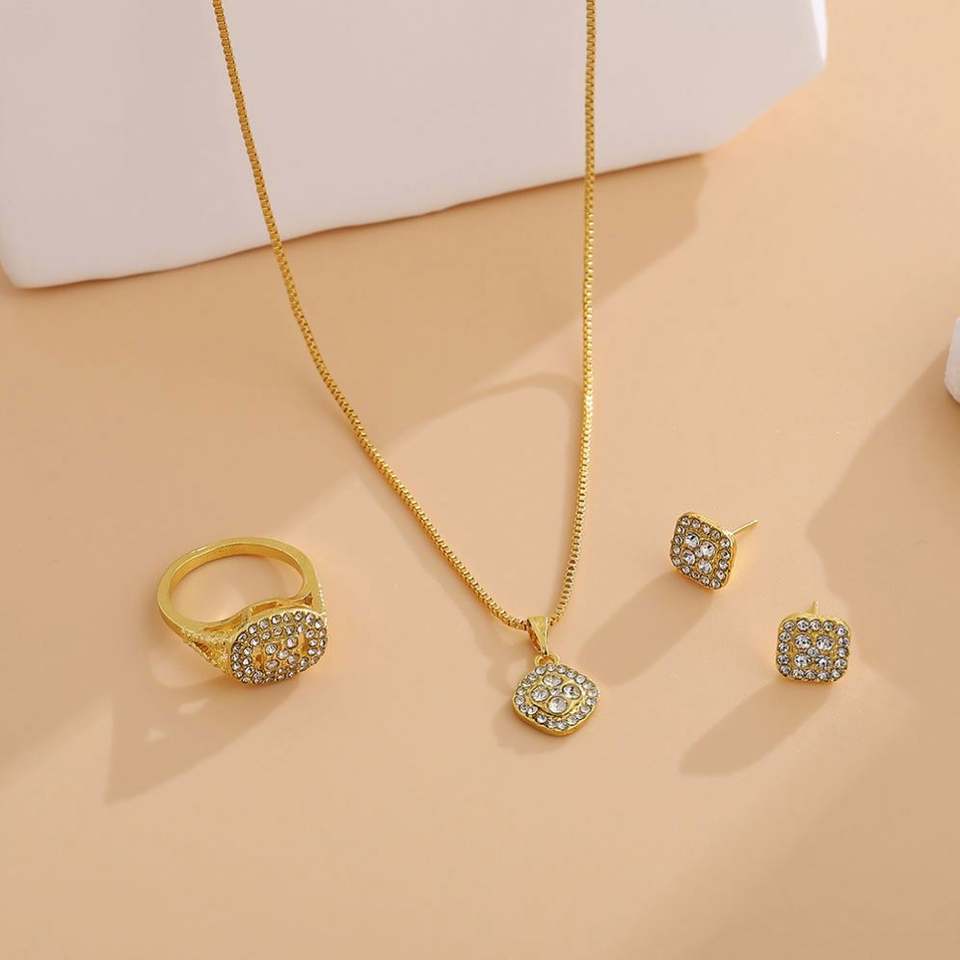 Cross-Border Women's Fashion Versatile Necklace Ring Three-Piece Earrings Set Factory in Stock Wholesale